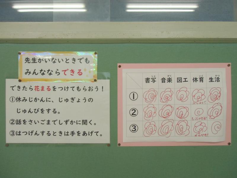 3つのめあてをしっかり守るために、子どもたち同士で声をかけあっていたようです。素晴らしいです!今度は、全部に花まるがつくといいですね。