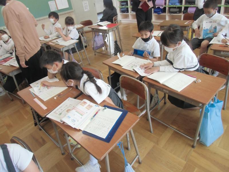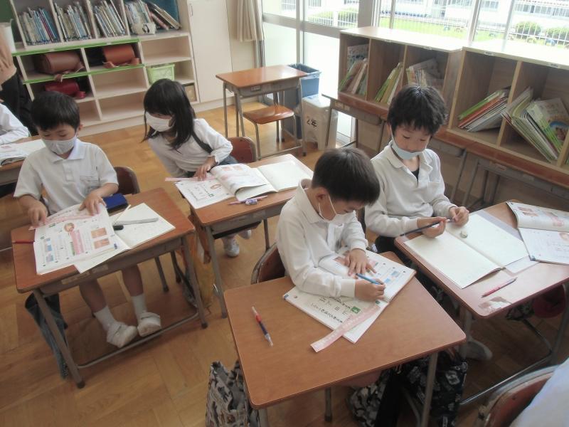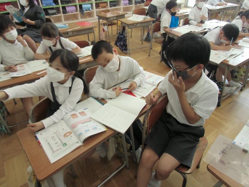 国語の学習の様子です。子どもたちは、かんさつ名人になって日記を書いています。