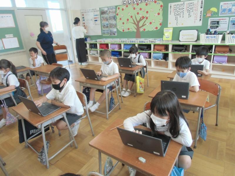 昨日、2年生は初めてchromebookを使いました。一人一台あたるということで、子どもたちはとても嬉しそうにしていました!