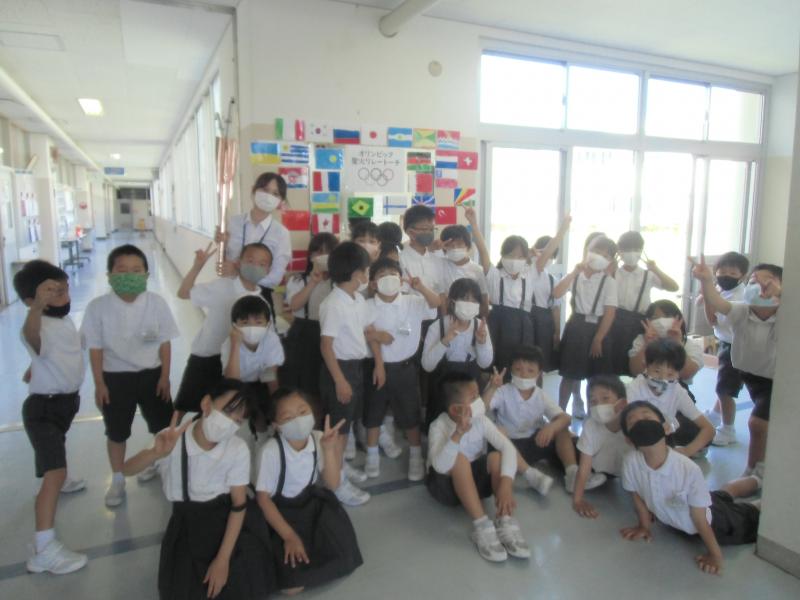 昨日の午前中、聖火リレーのトーチが鳳至小学校に届きました。聖火リレーの見学に参加できず、残念そうにしていた子どもたちでしたが、昨日は大喜び!