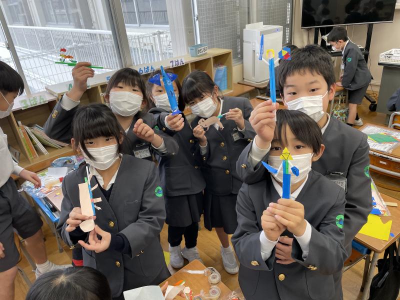 今日の図工の時間には、「パタパタストロー」を作りました。大きいストローに小さいストローを通すと、ストローが上下に動くおもしろい仕組みになっています。この上下の動きを活かして、工夫しながら、楽しく作品を作っていました!