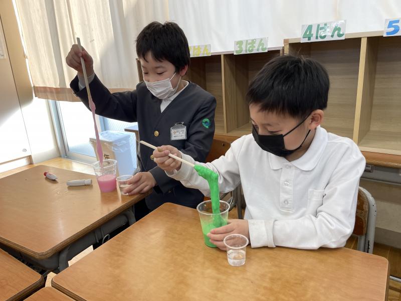 今日は、2年生最後の「お楽しみ会」を行いました。内容は、クリスマスパーティーの時に好評だった「デコレーションケーキ」と、1年生の時にやったことがある「スライム作り」です!みんなが楽しめることを大切にしたお楽しみ会は、笑顔いっぱいで大成功に終わりました♪