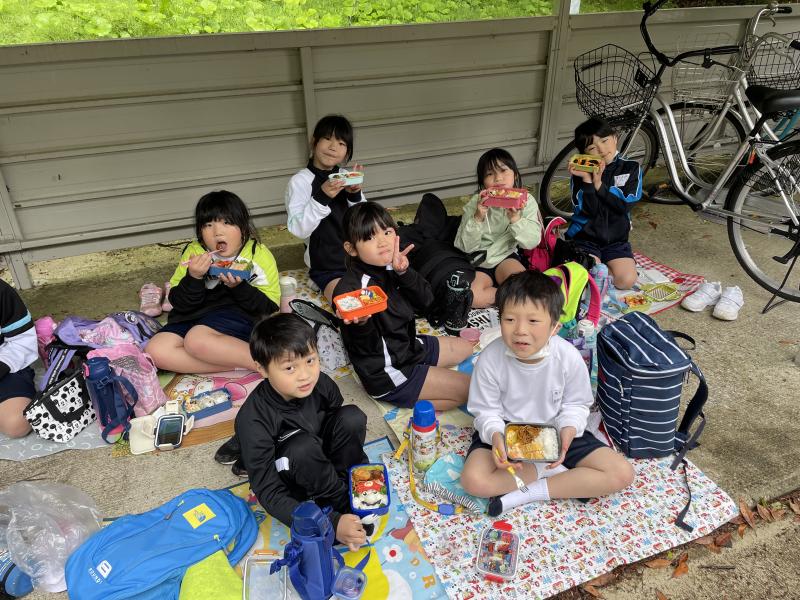 今日は遠足がありました。2年生は、一本松公園とふれあい広場へ行きました。子どもたちの楽しみは何といってもお弁当!自分のお弁当を嬉しそうに見せ合いながら食べている姿が微笑ましかったです♪