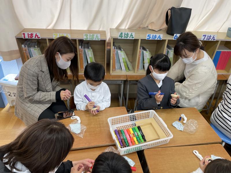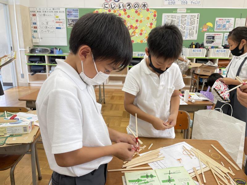 早く作り終えた子はお助けマンになり、一緒に教科書を読みながらおもちゃ作りをしていました!保護者の皆様、ご協力ありがとうございました。