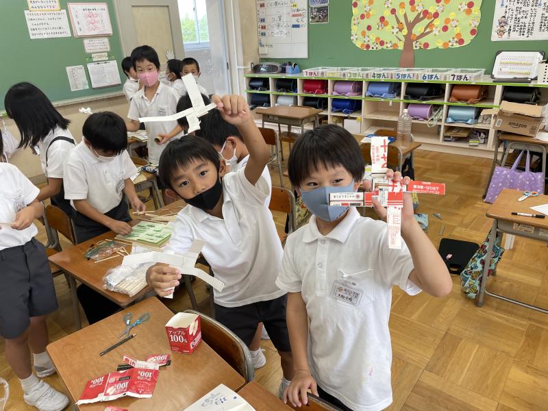 生活科では、子どもたちが楽しみにしていた「おもちゃ作り」が始まりました!この学習のゴールは、「おもちゃランドを開いて、1年生と一緒に遊ぼう」です。