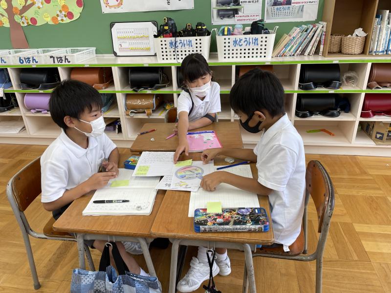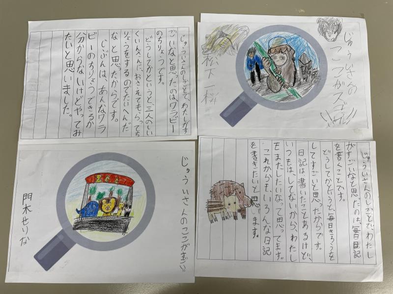 国語では、「どうぶつ園のじゅうい」の学習を行いました。今日は最後の活動で、じゅういさんの仕事ですごいと思ったところをグループのみんなに伝えました。