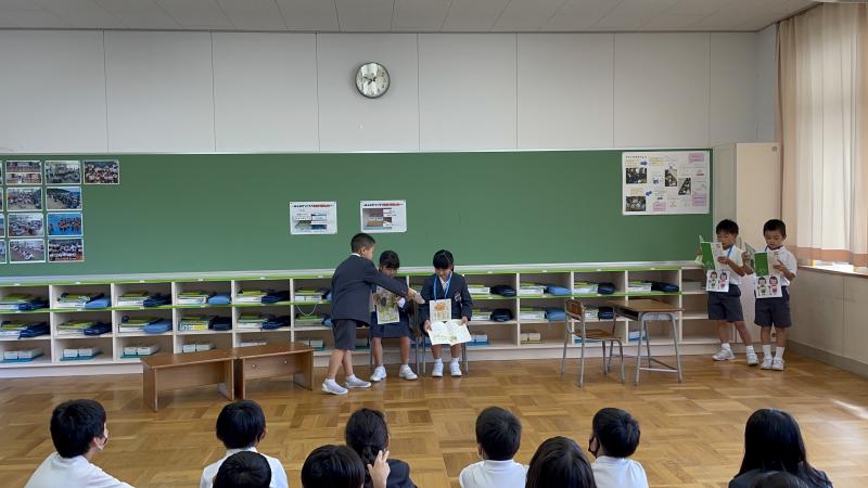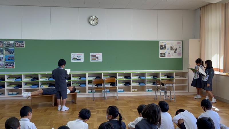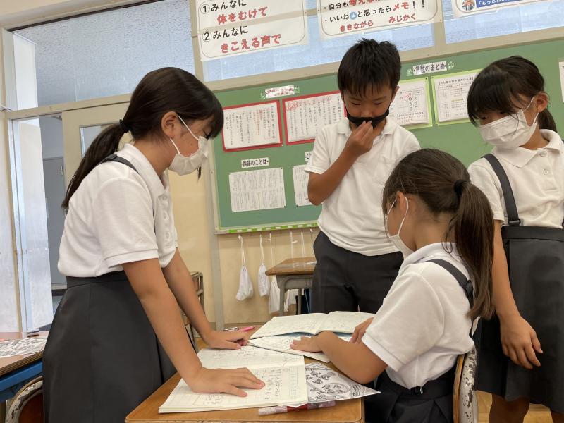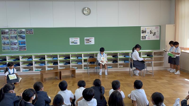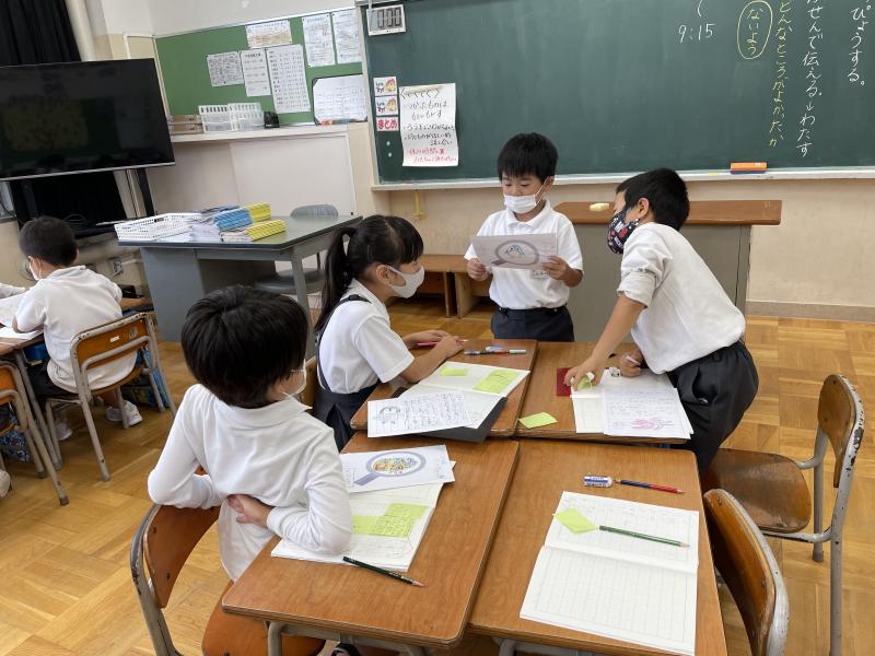 今日の国語では、「お手紙」の音読劇を行いました。1学期に行った「ふきのとう」の音読発表会よりもさらにパワーアップ!読み方だけではなく、表情や体の動きも工夫しながら、グループごとに練習を行いました!