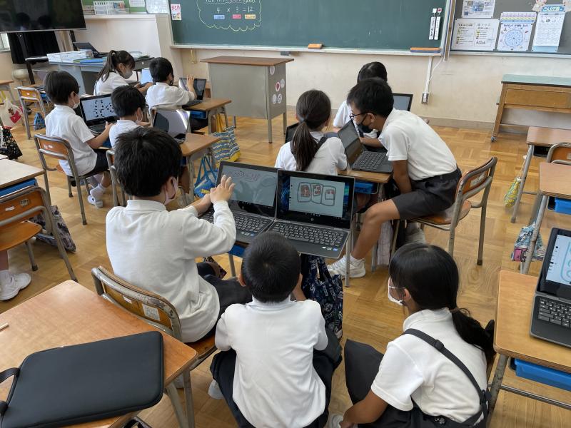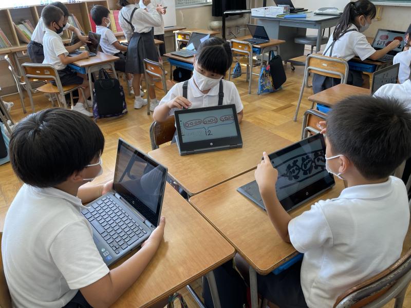昨日の算数では、chromebookを使って授業を行いました。かけ算の式を図に表すという活動です。