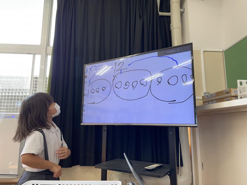 子どもたちは、図を見せながら、「1つ分の数」「いくつ分」というキーワードを使って、分かりやすく説明をしていました!