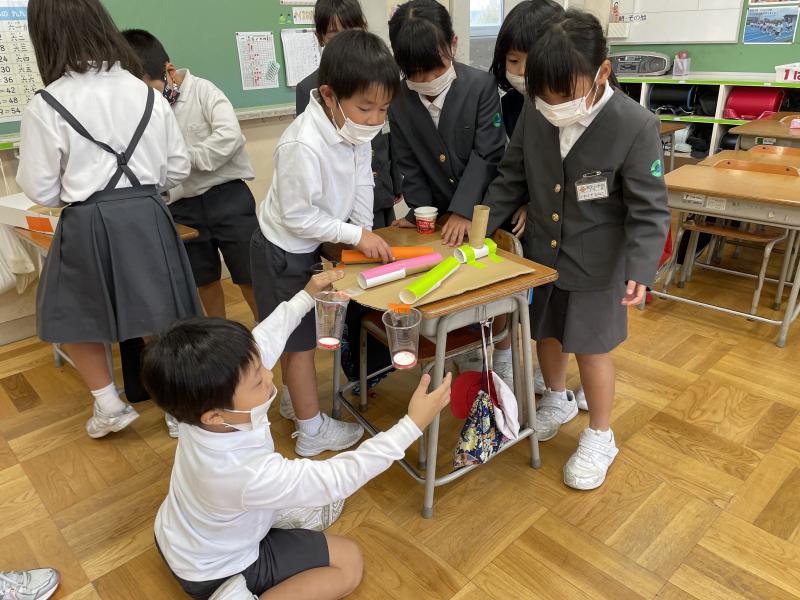 2021年11月9日 19時10分今日の生活科では、1年生を「おもちゃランド」へ招待しました!この日のために、子どもたちは何度も工夫して、準備をしてきました。