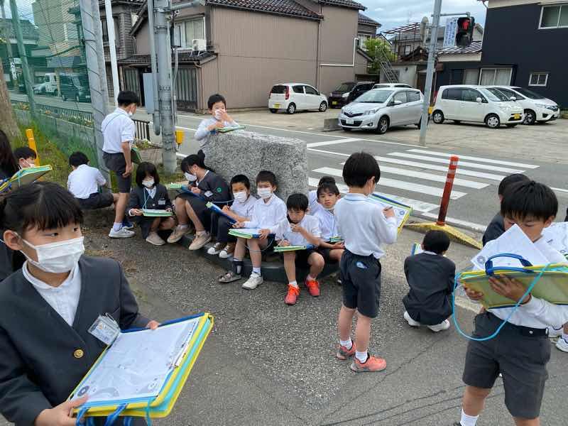 午後からは、社会科の学習で、町探検に行き、地図をかきました。