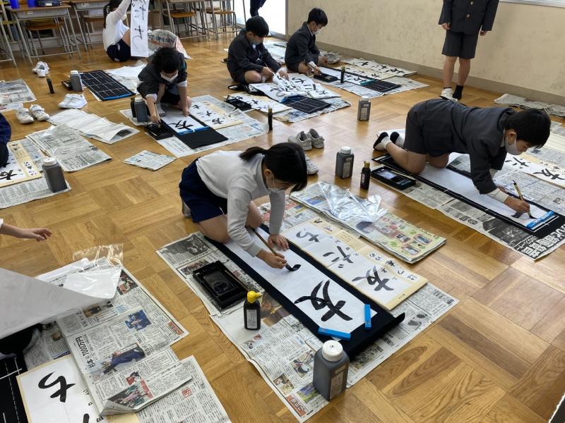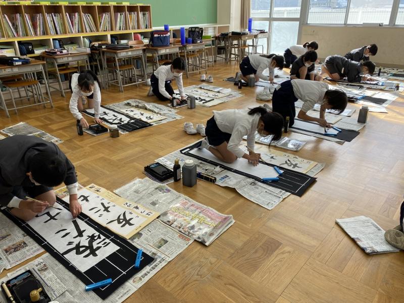 今日は、初めて毛筆での書き初め大会でした!冬休みに練習した成果を発揮できるよう、集中して取り組む姿がとても素敵でした!!