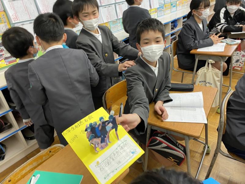 3年生は、頑張るよ!楽しみにしていてね!の気持ちを込めて、大好きな6年生に送る会の招待状を作成しました。招待状をもらった6年生は、嬉しそうに招待状を見ていて、その様子を見た3年生もとても嬉しそうでした!!