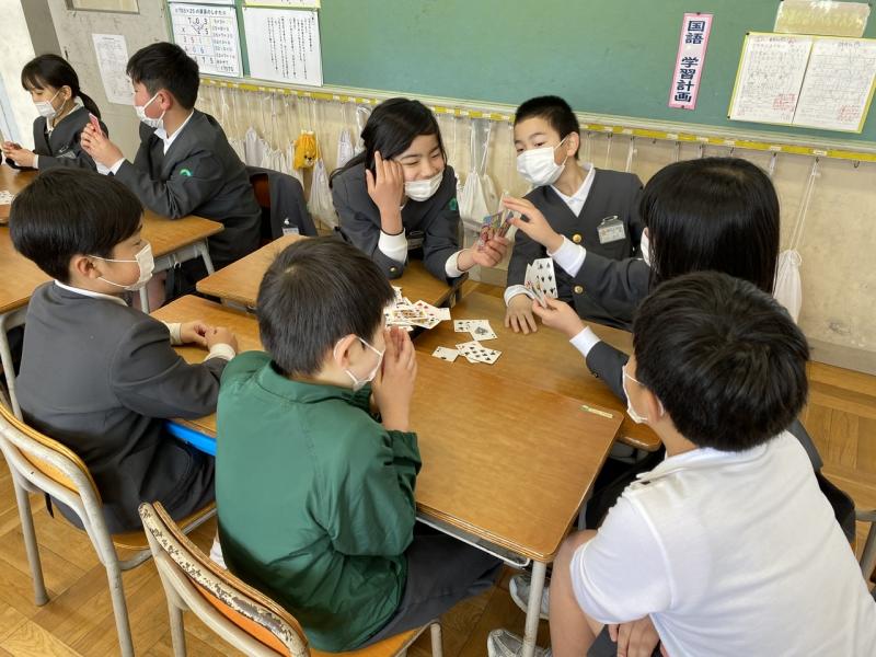 3年生最後のお楽しみ会は、①ビンゴ、②ケーキ作り、③ドッヂビー&ハンカチ落とし、④カードゲームと、盛りだくさんの内容です!