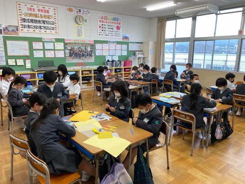 明日は1年生を迎える会です。3年生は1年生に「幸せな気持ちになってほしい!」という思いを大切にしながら、明日の発表のリハーサルをしたり、飾りを作ったりしました。明日が1年生にとっても、みんなにとっても、いい1日でありますように!