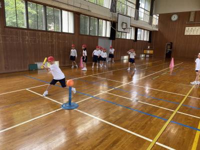 体育の授業では、三角ベースをしています。守備の位置や打順など、勝つための作戦をチームのみんなで考え、ゲームに挑みます。みんなで決めたルールを守りながら、ホームラン目指して楽しく授業しています!