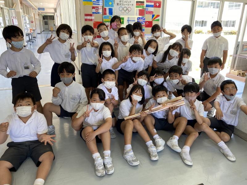 昨日、一日限定でトーチキスで使われたトーチが学校に飾られました!聖火リレーが無くなったので、直接見ることができないと思っていたので、間近で見たり触ったりすることができて、子どもたちは大興奮していました。