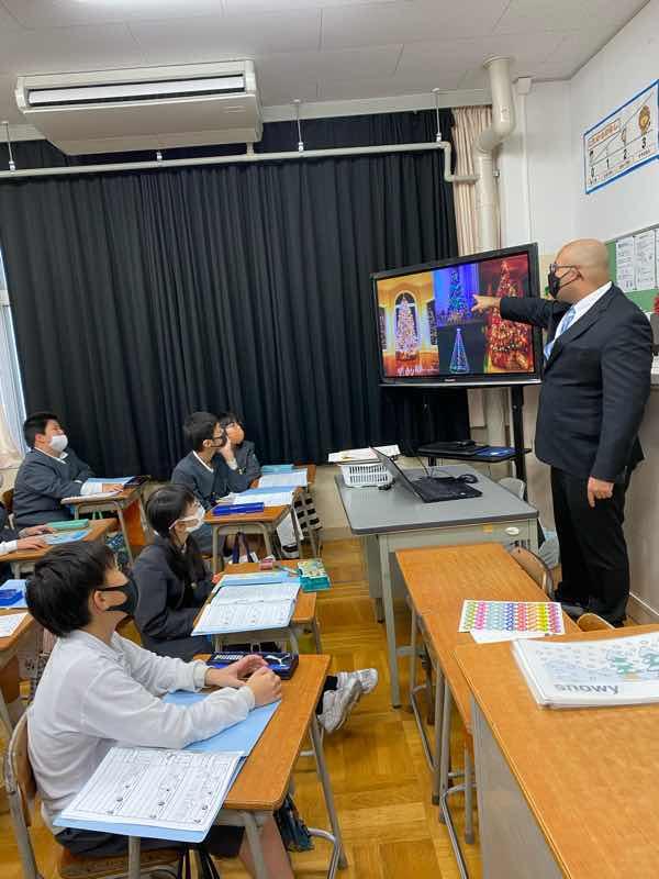 今日の外国語活動では、クリスマスについて学びました。なぜクリスマスがあるの?日本とアメリカのクリスマスには、どんな違いがあるの?ALTの先生から、たくさん教えていただきました。