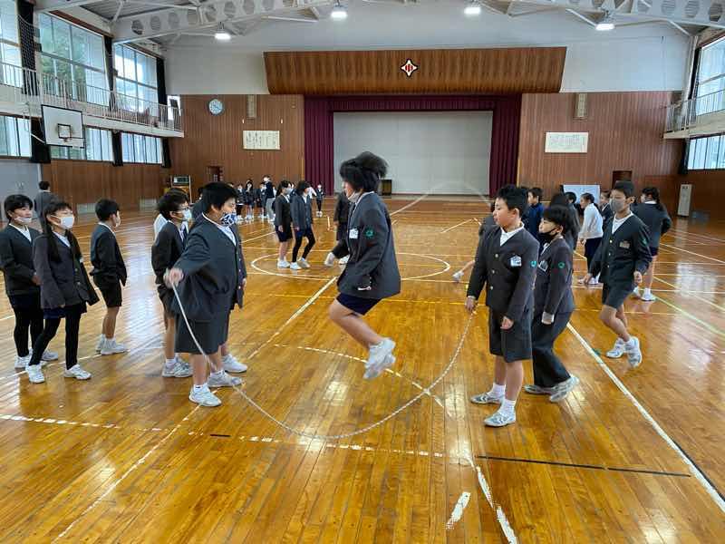 来週の8の字とび大会に向けて、休み時間も練習しています。今年は赤組VS白組です。同じチームの仲間と協力して、ベストを目指せ‼︎