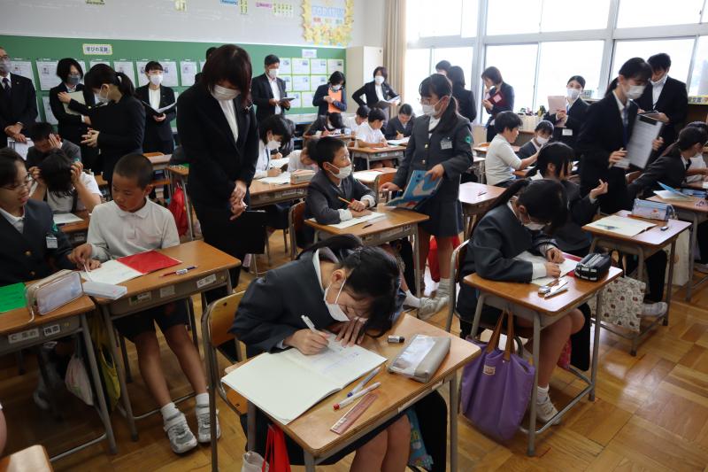 月曜日に、5年生の研究授業がありました。鳳至小学校の先生方、外部から来られた先生方など、たくさんの人に囲まれた中での授業でした。