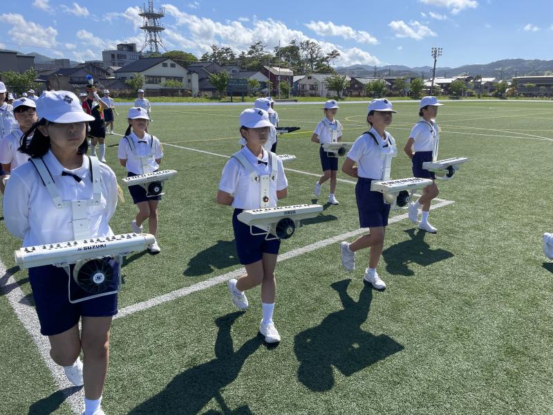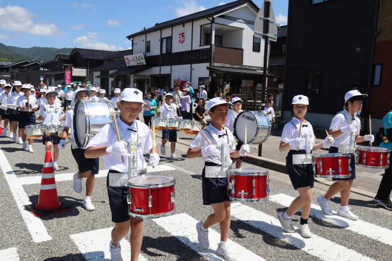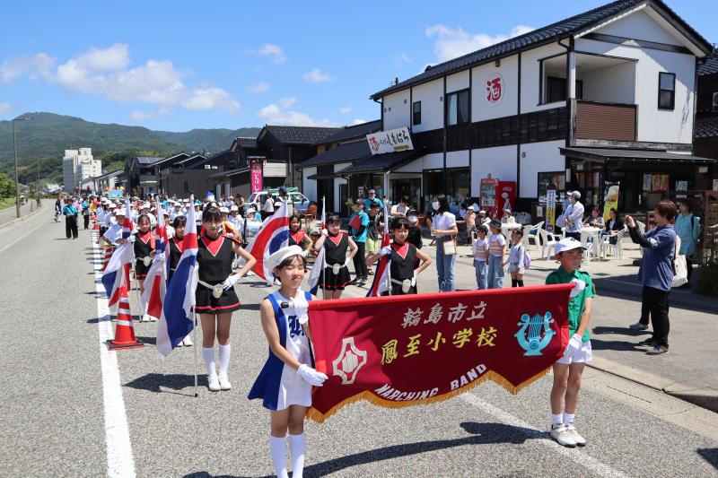 6月3日に行われた輪島市民祭りで、6年生と一緒に金管鼓隊を披露しました。これまでの練習の成果が十分に発揮された、とても素晴らしい演奏を披露することができました。輪島市の地域の方々、保護者の皆様に元気や笑顔を届け、見てる人の心を動かす金管鼓隊でした。