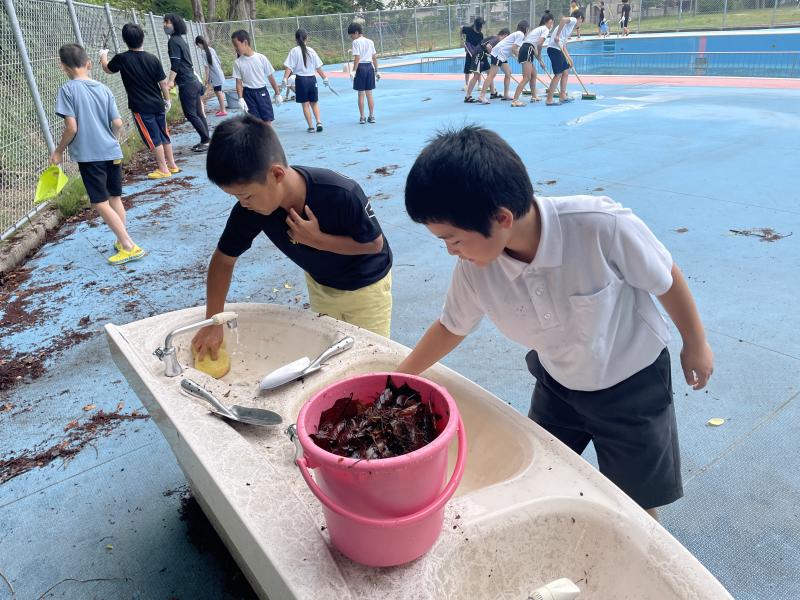今日はプール掃除を行いました。5年生は、更衣室や手洗い場、シャワー、プールサイドを担当しました。1年間分の汚れをとるために、時間いっぱい一生懸命掃除をしていました!みんなのために頑張る姿がとても素敵でした!