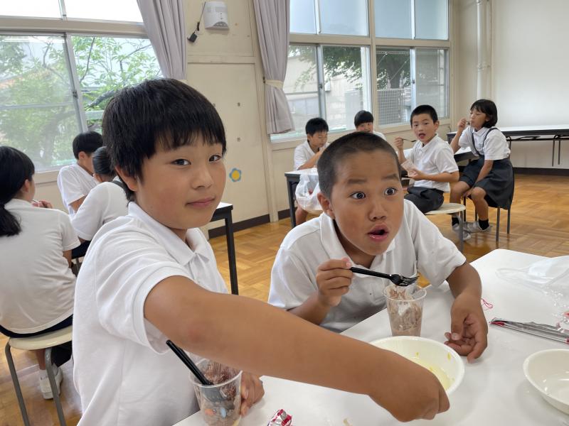 昨日は、お楽しみ会が行われました。「パフェ作り」「水遊び」「映画鑑賞」といった盛りだくさんの内容でした!どれも楽しんでおり、子どもたちのたくさんの笑顔が見られました♪明日からはいよいよ夏休み!家族や友達との時間を大切に、楽しく安全に過ごしていったほしいなと思います!