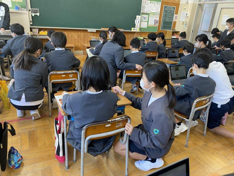 国語科「提案します、言葉とわたしたち」の学習で、4月に取り入れて欲しい給食のメニューを提案します。そこで、鳳至小学校の現状を調べたり、根拠となる情報を集めたりするために、全校の皆さんにアンケートをとりました。この日は、1年生にアンケートの答え方を教えるために、教室にお邪魔しました。