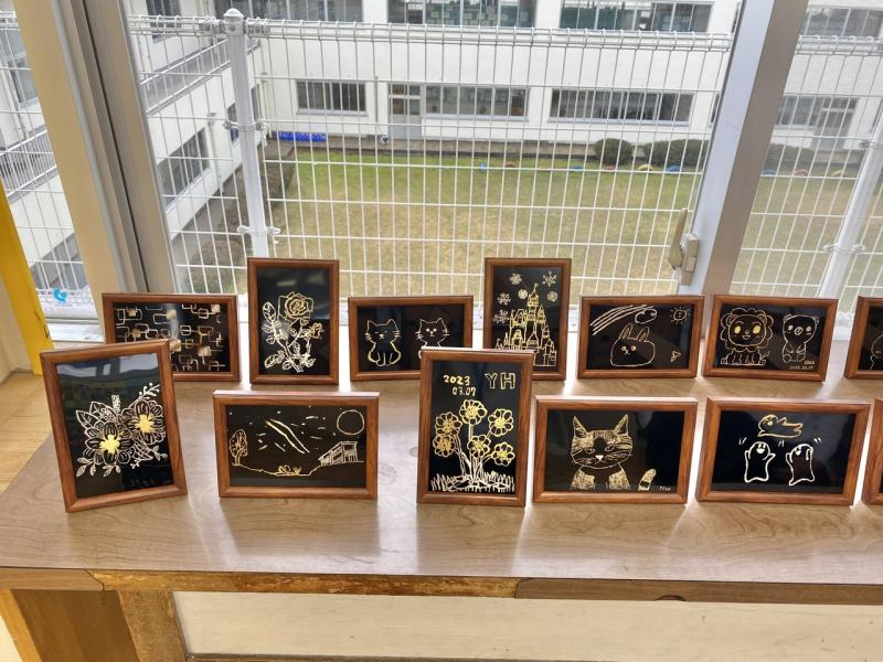 出来上がった作品を見ると、どれも丁寧に美しい仕上がりになっていました!輪島蒔絵業組合の皆さん、保護者の皆さん、お忙しい中参加していただきありがとうございました!