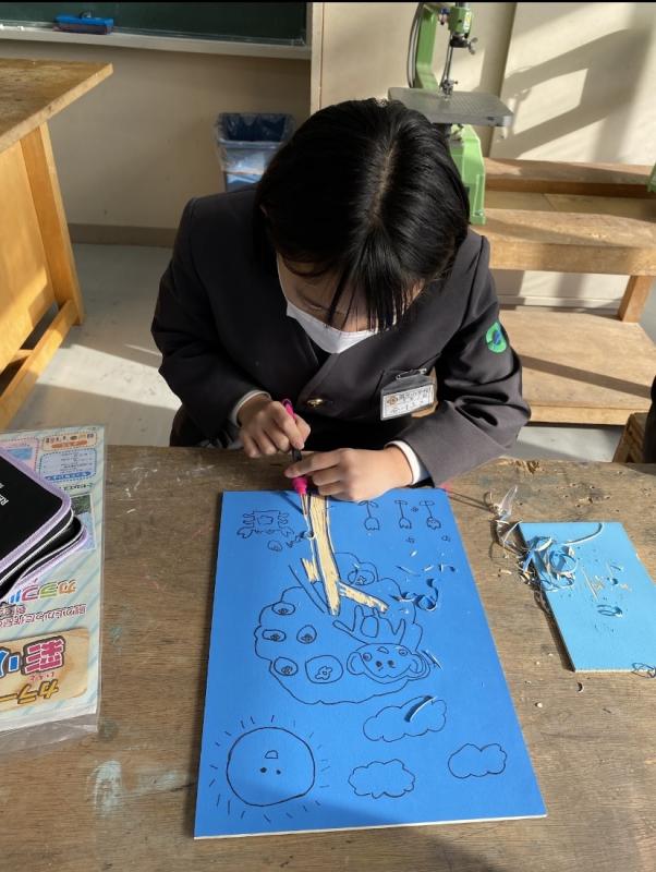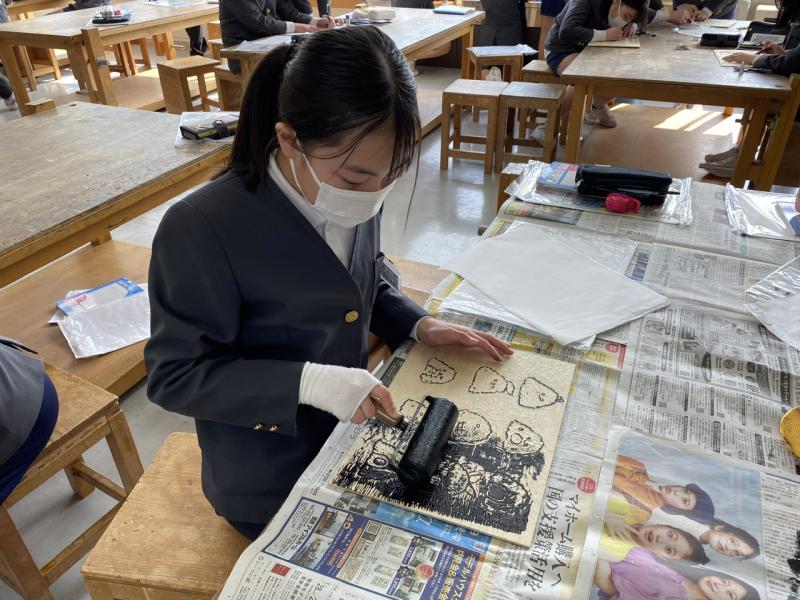 図画工作科「彫り進めて すり重ねて」の学習では、初めて彫刻刀を使ってカラー版画に挑戦しました!一生懸命に彫り進めた後は丁寧に刷りとり、最後に色をつけました。