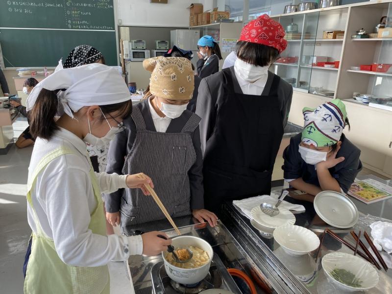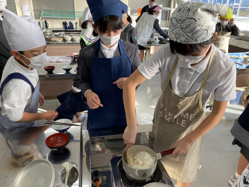 家庭科の学習で、米飯とみそ汁の調理実習を行いました!米飯は、お米を洗い、吸水させ、火加減を調節しながら鍋で炊きました。みそ汁は煮干しの頭とはらわたを取るところから自分たちでしました!グループごとに選んだみそ汁の実は、入れるタイミングに注意しました。どのグループもとても美味しいご飯とみそ汁が完成しました♪