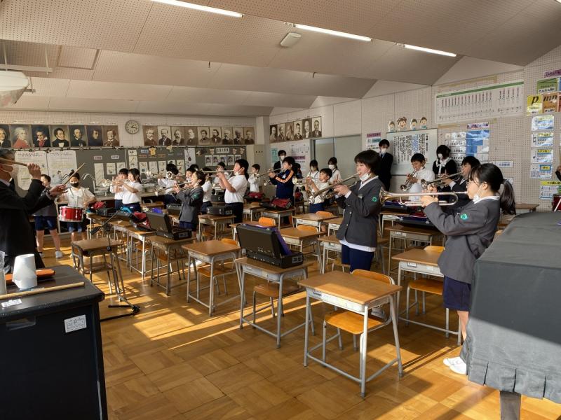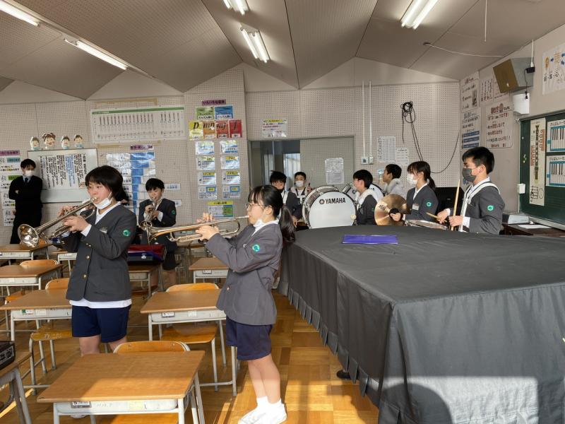 2023年1月12日 17時28分3学期が始まってまだ3日目ですが、もう昼休みに金管鼓隊の自主練習をしている4、5年生がたくさん!自主的に音楽室に集まり、様々なパートで合わせる姿が見られました!6年生を送る会では、校歌を披露しますが、すでに本番の演奏が楽しみです!!
