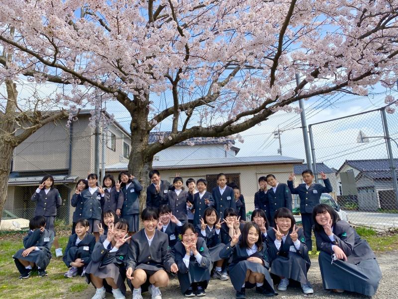 今日、5年生になって初めて29人全員が揃いました!天気も良く、桜が満開だったため、外で記念撮影♪