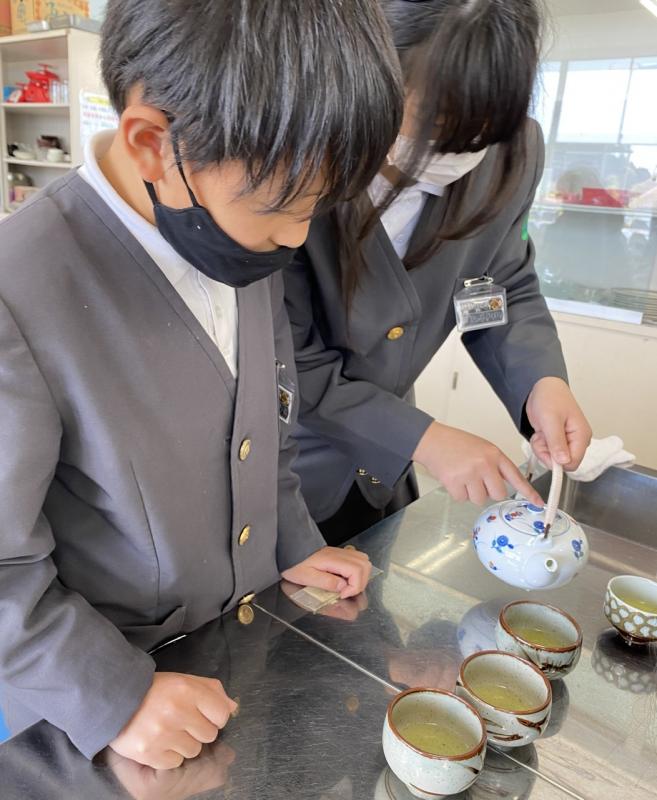 家庭科「私の生活、大発見!」では、ガスこんろの使い方とお茶の入れ方を学習し、実際に自分たちでお茶入れ体験をしました。子どもたちは、火をつける手順やお湯の注ぎ方などに気をつけて、お茶を入れることができました!