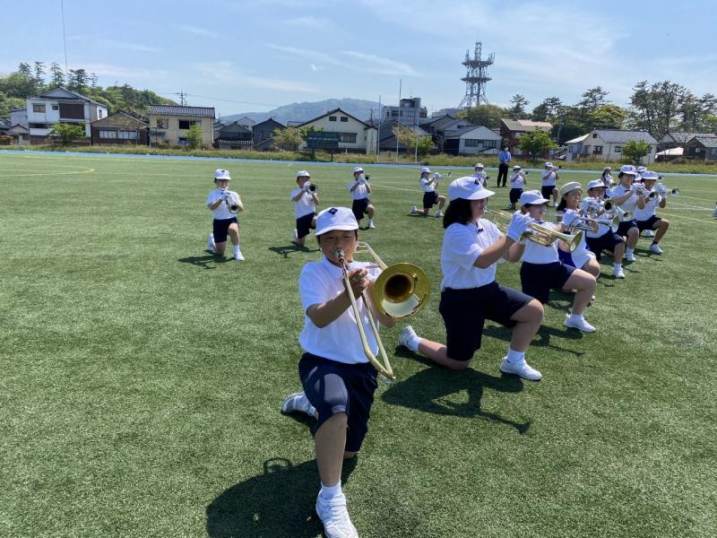 4月27日に、1年生を迎える会が行われました。5年生は、6年生と一緒に金管鼓隊を披露しました。子どもたちは、1年生に「すごい!」と思ってもらえるような演奏がしたい!と思い、一生懸命に練習を重ねました。その結果、本番では素晴らしい演奏を見せてくれました!
