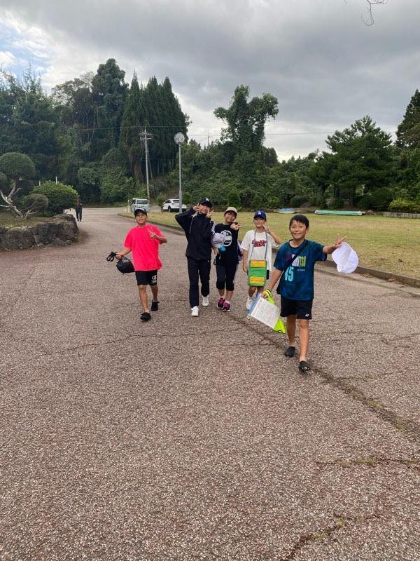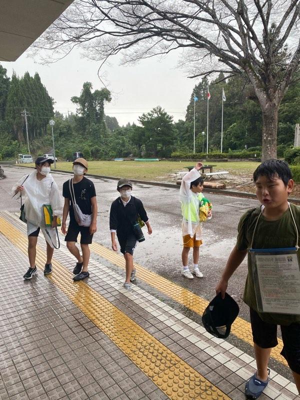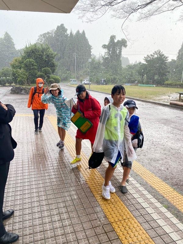 昼ご飯を食べて、エネルギー全開!!通り雨が降っていますが、雨にも負けず、風にも負けず、鳳至っ子の最上級生達は、元気に追跡ハイキングに出かけました。
