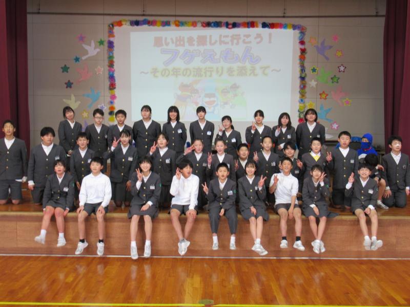 先日の6年生を送る会では、6年生の素晴らしい姿が見られました。練習始めのころは、恥ずかしさなどから、全く声が出なかったり、動けなかった6年生も、最後には34人全員で1つの劇を完成させることができました。