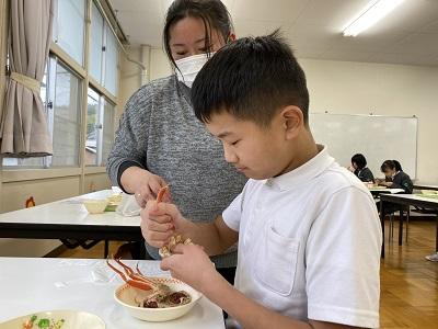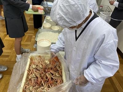 本日、香箱ガニを丸ごと1杯ずついただきました!佐渡先生と上濵先生から、カニの甲羅や脚の外し方を教えてもらい、日本海の冬の味覚を堪能しました!美味!!