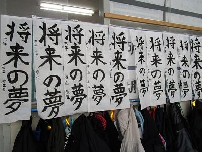 新しい年が明け、3学期がスタートしました!久しぶりに会った子どもたちは、またちょっと身長が伸びていたり顔つきも一段と大人びて見えたりして、もうあと少しで中学生になるんだな~としみじみ感じました。書き初め大会で、6年生が書いたのは「将来の夢」。一筆一筆、心をこめて書いていました。子ども達の次のステージである中学校での生活、そして未来を見据え、将来の夢に向かってがんばる6年生を全力で応援しています!!
