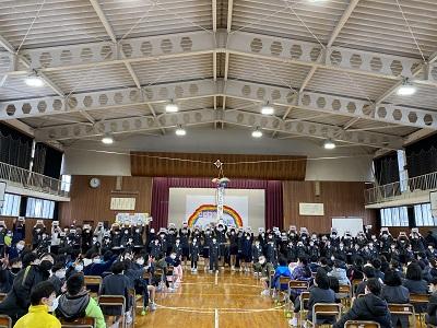 1年生を迎える会がありました。「1年生が楽しいと思えるような会にしよう」という目標のもと、一人一人が自分の役割をしっかりと果たしました。また、金管鼓隊でも、「これまでで1番」という目標のもの、気持ちの入った演奏を見せてくれました。
