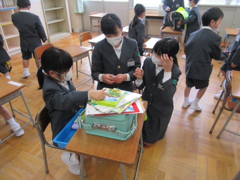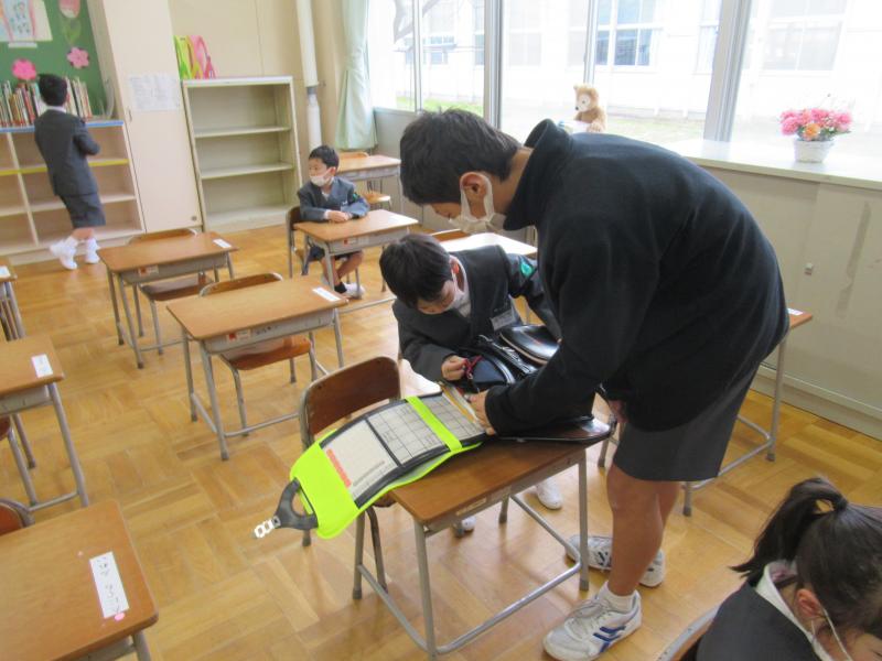 1年生の準備を手伝う6年生