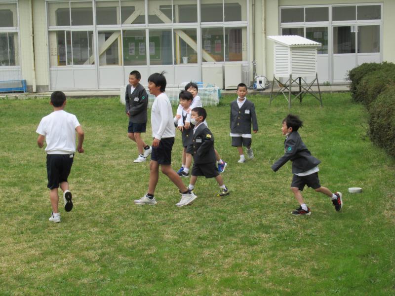 休み時間に1年生と遊ぶ6年生