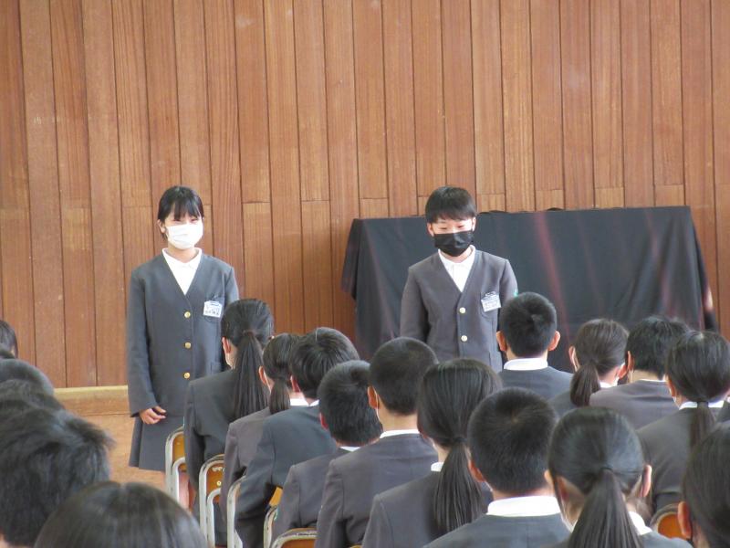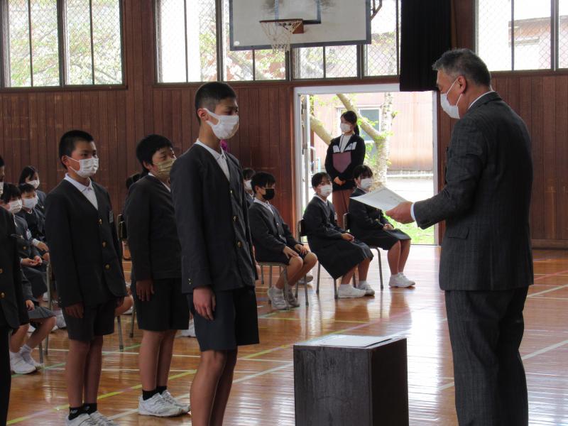 前期委員会、学級委員の任命式が行われました。