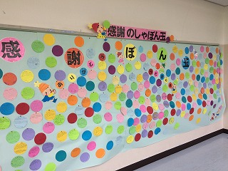 子どもたちの友だちへの感謝の想いが、カラフルなシャボン玉に乗って飛んでいます。心が温かくなる行動がたくさんです!