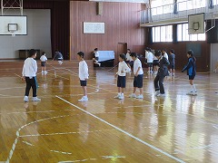 2年生が、朝の運動で8の字跳びに挑戦しています。