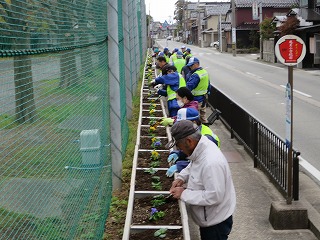 本日、鳳至っ子見守り隊の方々が、運動場横の花壇にパンジーの苗を植えて下さいました。
