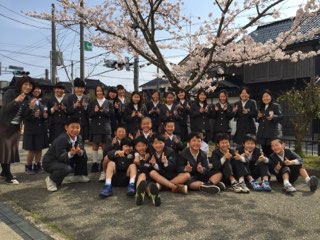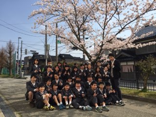 6年生が満開の桜の木の下で集合写真を撮りました。