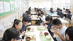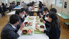 6年生が卒業制作で作った「輪島塗り マイ椀」で給食を食べました。