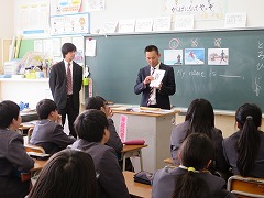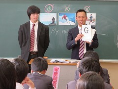 輪島中学校から2名の英語担当の先生が来校され、6年生に英語の授業を行ってくれました。