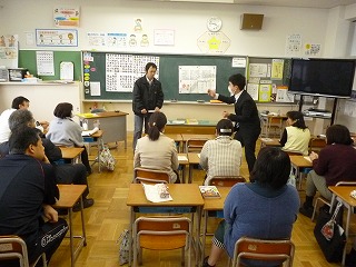 本日,不審者対応と避難訓練を行いました。今回は職員のみの訓練で,先生役・子ども役になりそれぞれの立場で,状況に応じた判断と行動が出来ることをねらいとしました。また,子どもたちがいる訓練では,不審者と直接対応している様子が見えないという反省から,現場を見ることも兼ねていました。